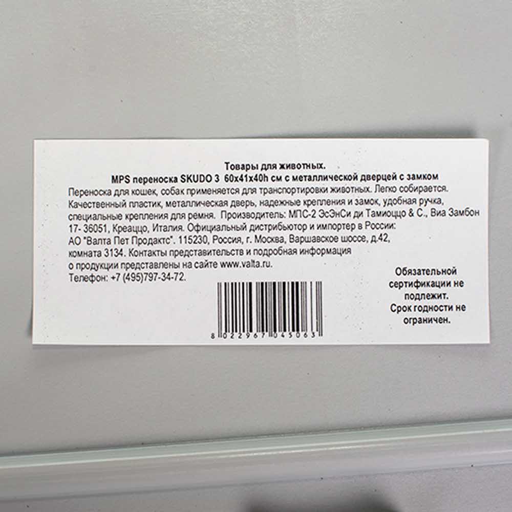 MPS переноска SKUDO 3 60х40h см с металлической дверцей с замком серая