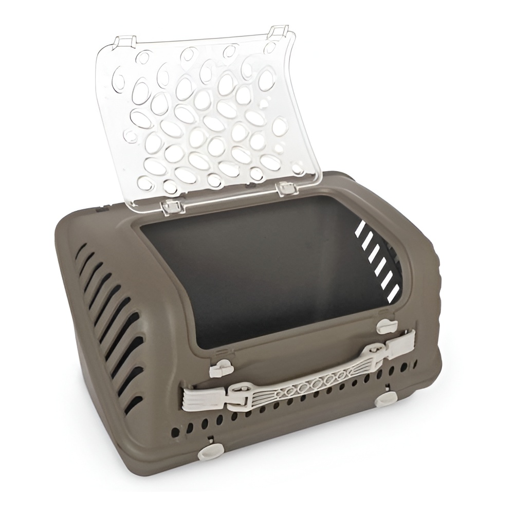 Выполненная из высококачественного пластика. Переноска оснащена перфорацией для вентиляции воздуха, удобной ручкой, в комплекте плечевой ремень. Прозрачная пластиковая дверца открывается в двух направлениях: с низу вверх и наоборот.