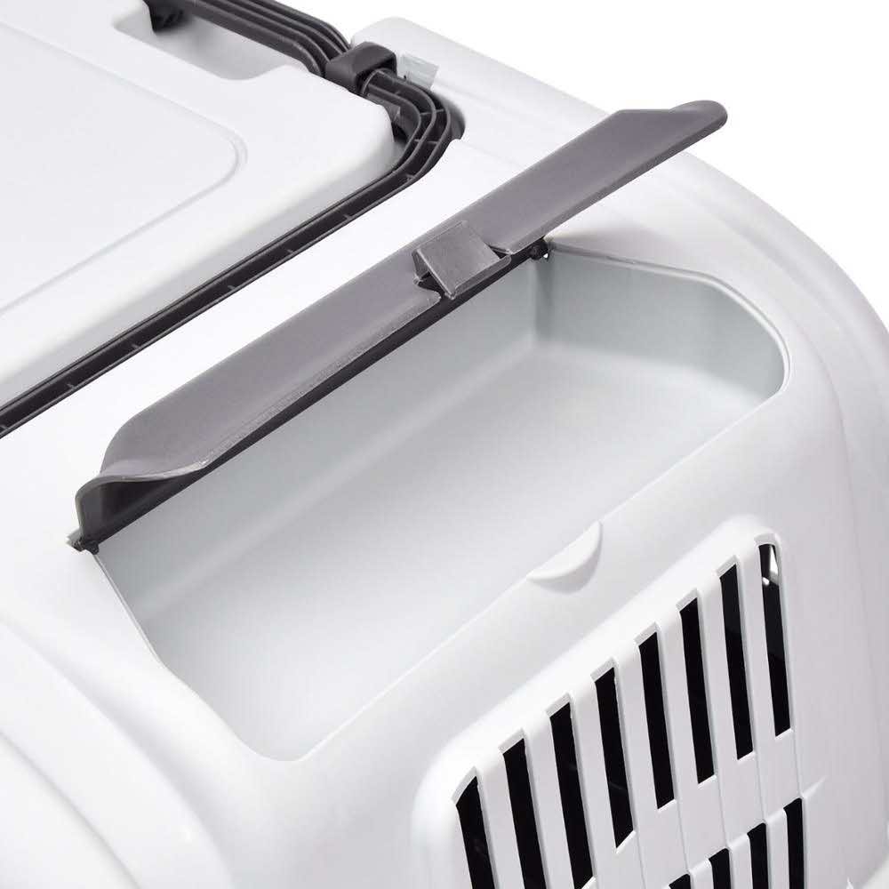 Металлическая дверца и поддон крепятся к корпусу современными замками-защелками (также на дверце имеются дополнительные фиксаторы), что обеспечивает безопасность питомца во время поездок.