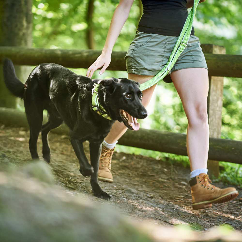 Поводок можно отрегулировать до нужной длины с помощью карабинов, что удобно во время тренировки.