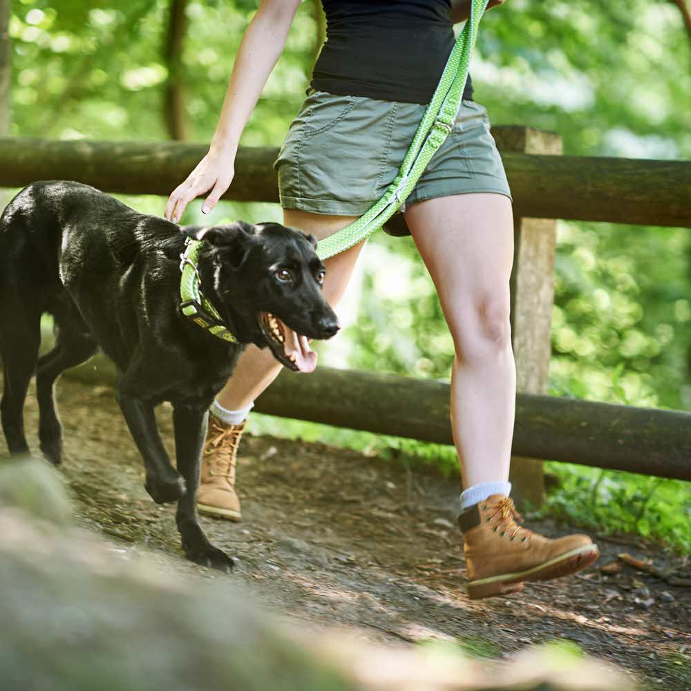 Поводок можно отрегулировать до нужной длины с помощью карабинов, что удобно во время тренировки.
