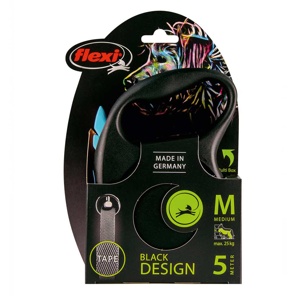 flexi рулетка Black Design M (до 25 кг) 5 м лента черный/синий