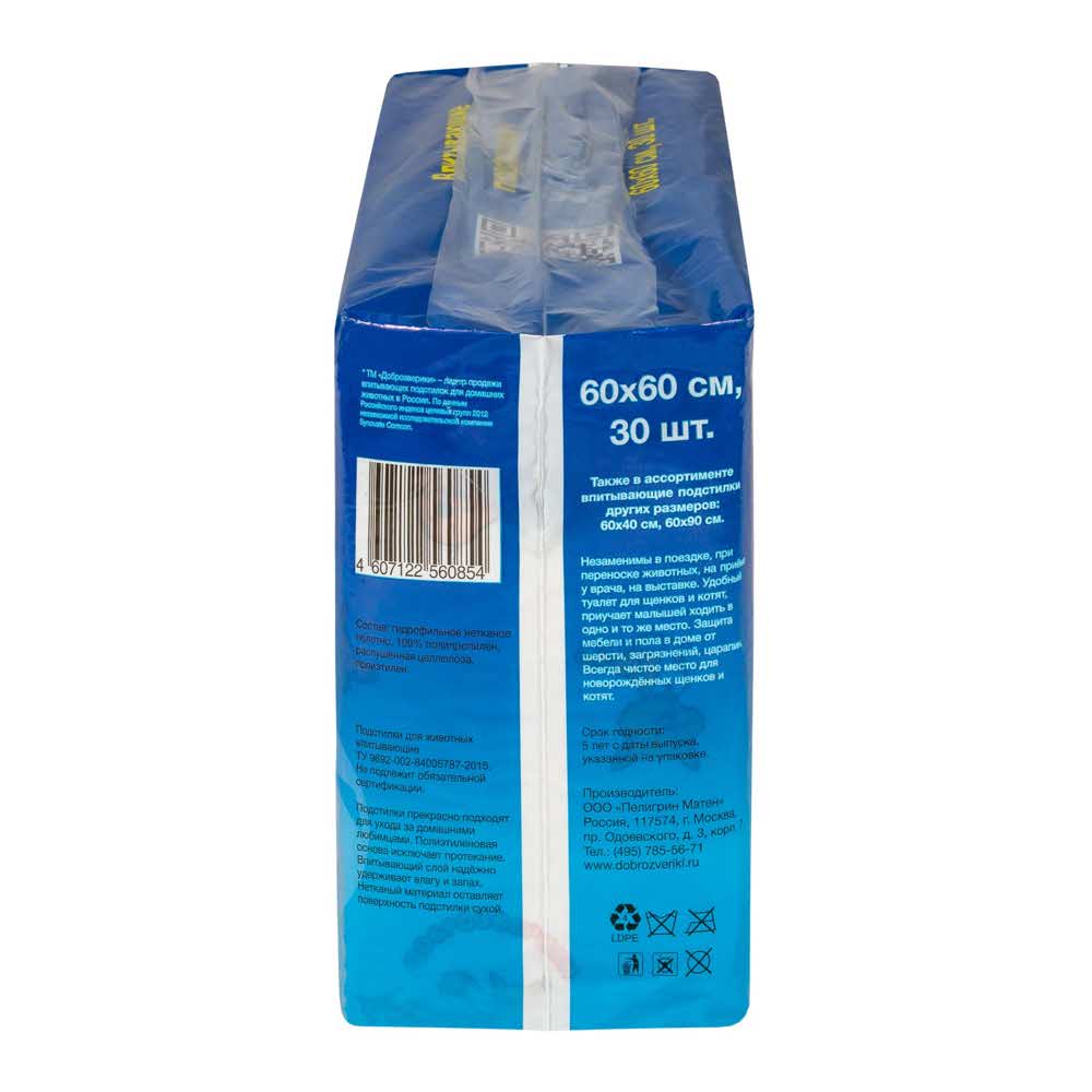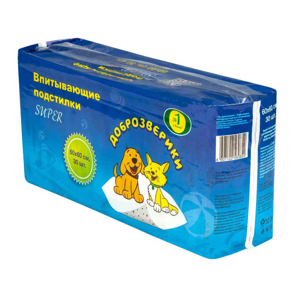 Доброзверики подстилки для животных "Super" с рисунком 60х60, 30 шт.