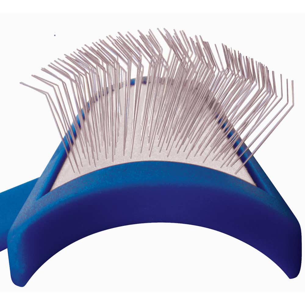 Эта легковесная щетка имеет длинную эргономичную ручку, искривленную головку и длинные мягкие булавки. Идеально подходит для ухода за щенками и деликатного вычесывания.