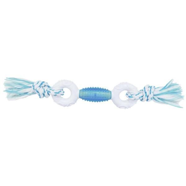 CanineClean игрушка для собак Регби и 2 кольца нейлон/синтетическая резина 39 см с ароматом мяты, голубой