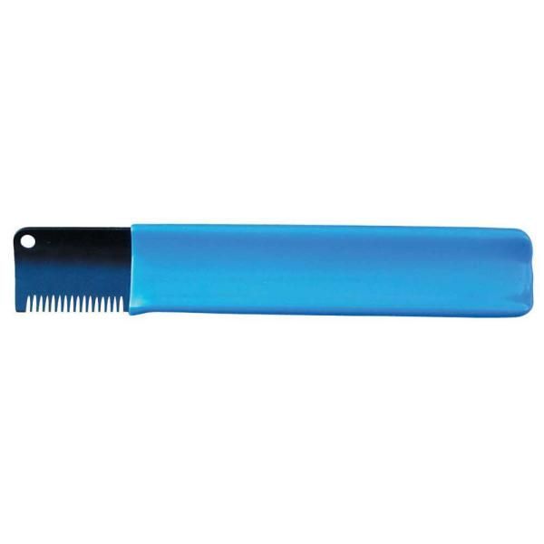 Нескользящая ручка, редкие зубцы, длина зубцов 4 мм. Цвет: синий.