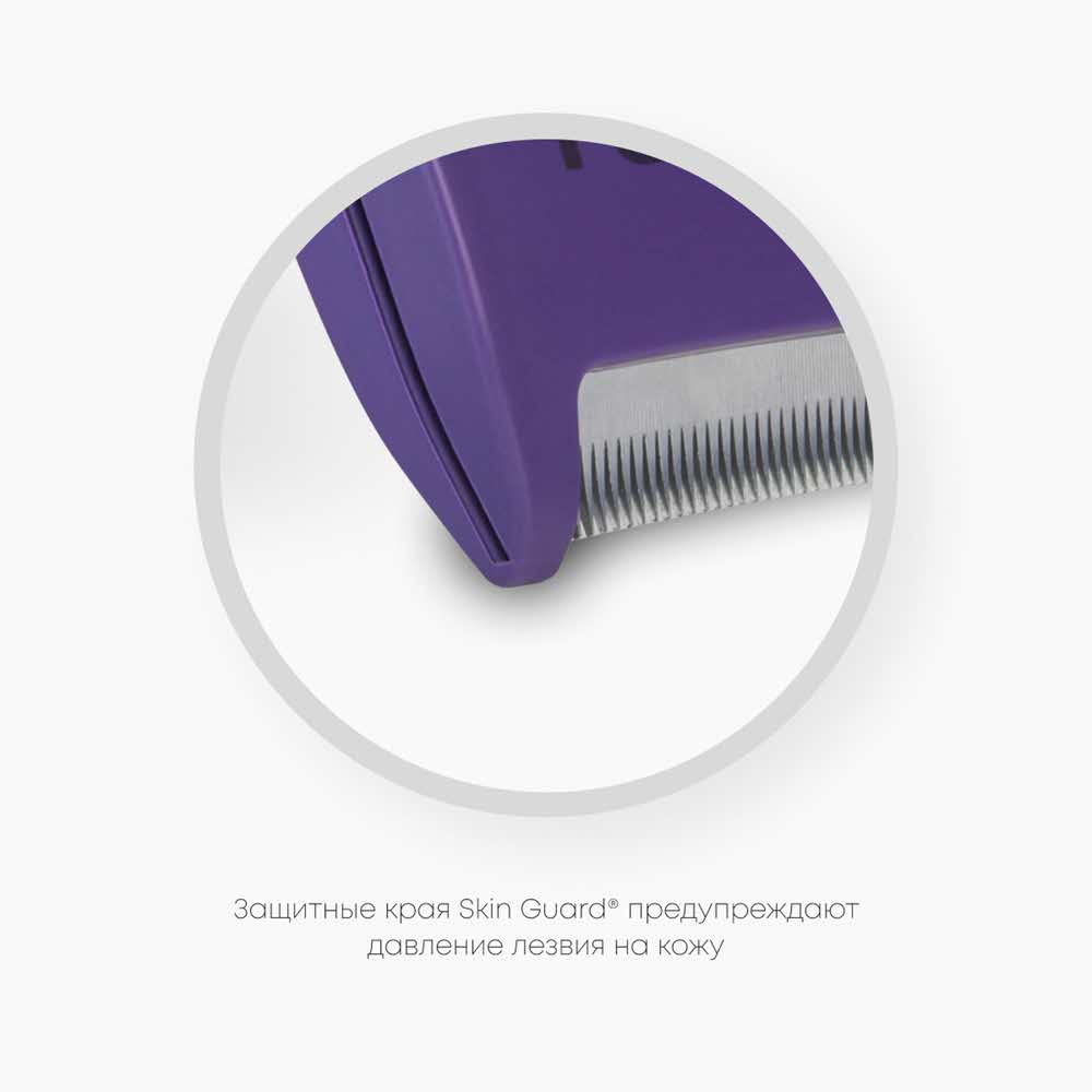 Кнопка самоочистки легко сбрасывает шерсть с инструмента. Защелкните ее для защиты в процессе хранения. Защитные края предупреждают давление на кожу.