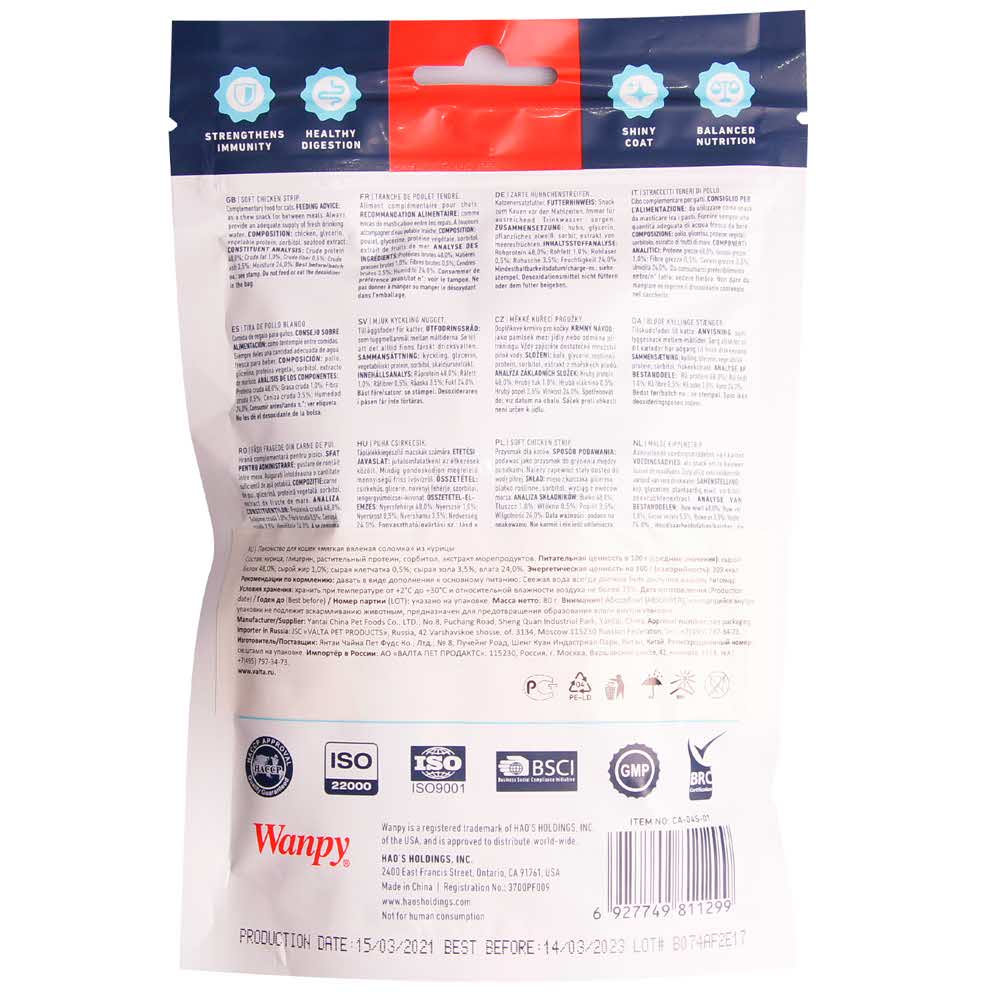 Wanpy - флагманский бренд Yantai China Pet Food Co., Ltd., был основан в 1998 году и быстро стал лидером в категории лакомств для домашних животных. Известный своими вялеными лакомствами, Wanpy заслужил репутацию, что «Wanpy — это вяленое мясо, а вяленое мясо — это Wanpy». За последние 26 лет Wanpy глубоко развил свою цепочку поставок, гарантируя непревзойденное качество и вкусовые качества. Сегодня мы гордимся тем, что являемся экспортером кормов для домашних животных № 1 в Китае. Продукты Wanpy продаются в 67 странах и регионах по всему миру, изготавливаются исключительно из сырья, пригодного для употребления в пищу человеком на 22 передовых собственных заводах по всему миру.