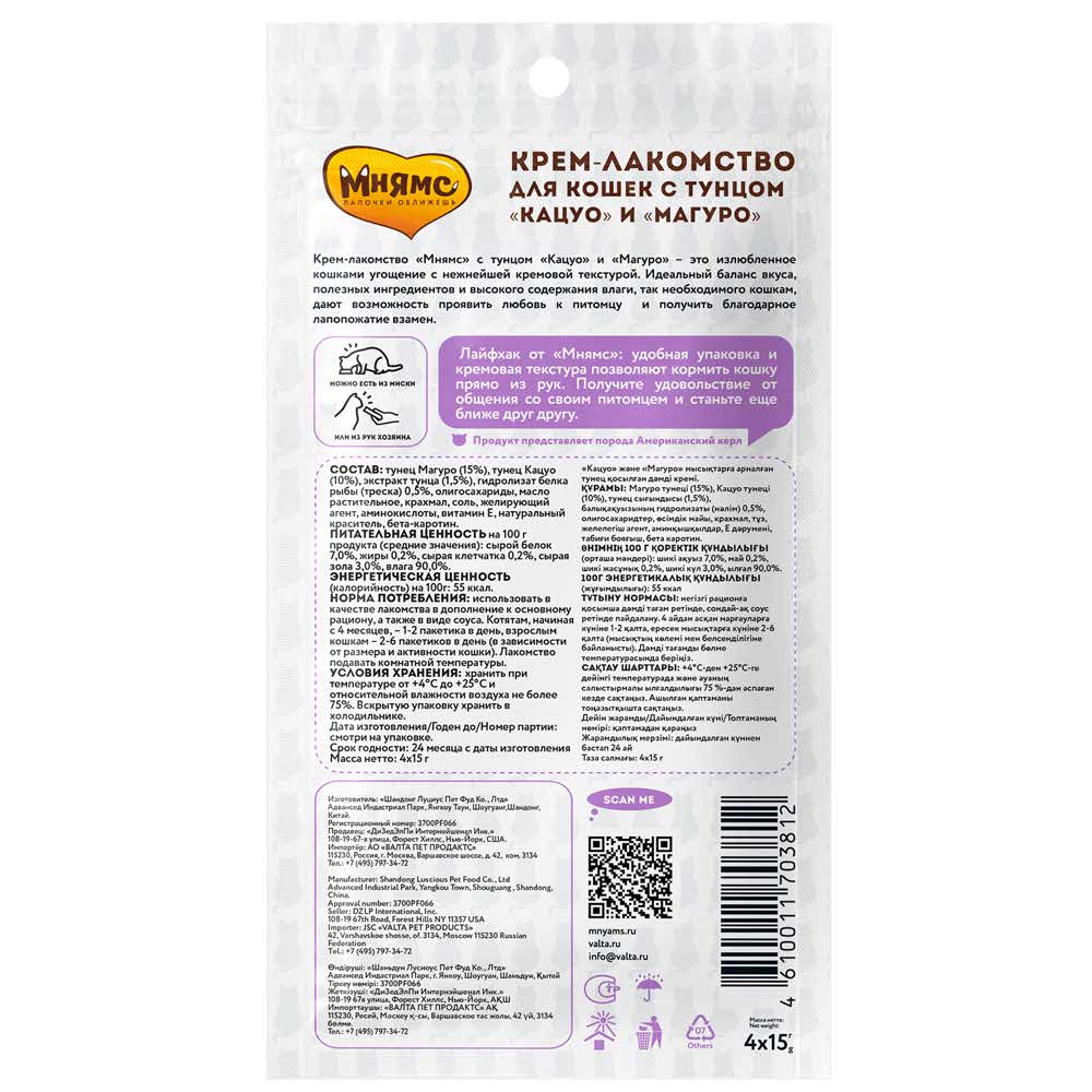 Крем-лакомство Мнямс для кошек с тунцом Кацуо и Магуро 15 г х 4 шт.