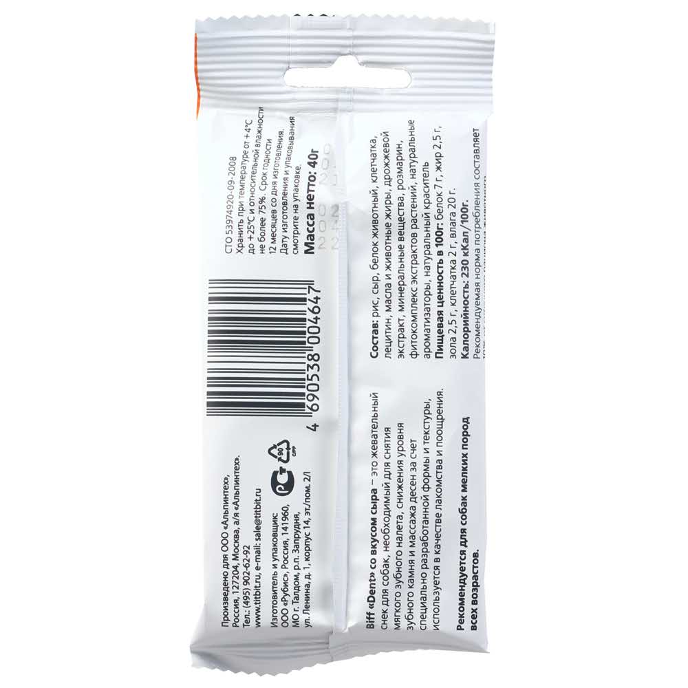 Лакомство TiTBiT Жев снек DENT для собак мелких пород со вкусом сыра 40 г