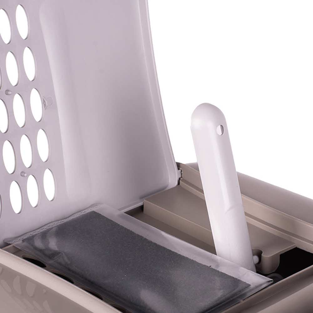 - IMAC EASY CAT оборудован выдвижной ручкой, что позволяет разместить его в любом удобном месте вашего дома. В комплекте с био-туалетом идет совок с удобным креплением, что облегчает процесс уборки.