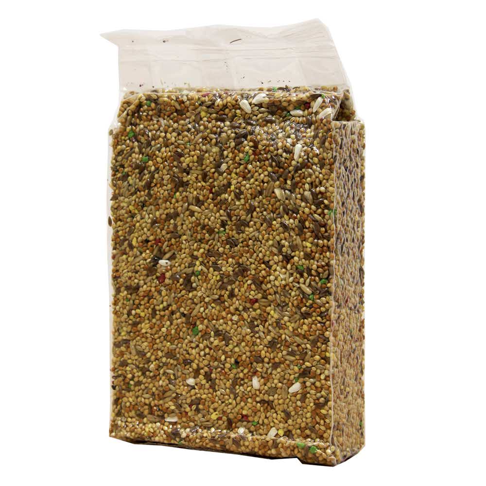 Классическая смесь для волнистых попугаев. В состав входит желтое просо, красное просо, овес лущеный, белое просо, лён, сафлор канареечный, семена канареечника, пекарные продукты.