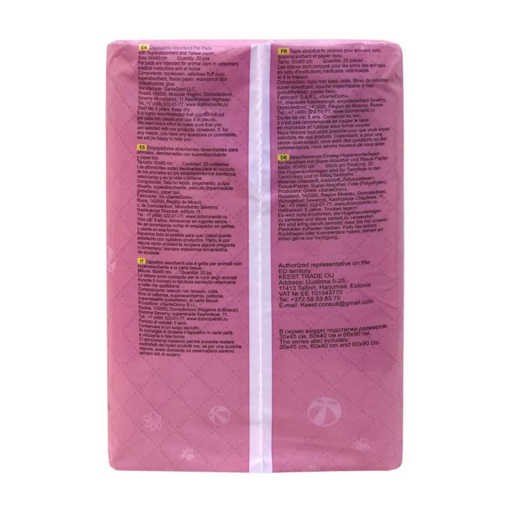 Доброзверики подстилки впитывающие для животных с бумагой тиссью и суперабсорбентом 60х60 см, 20 шт