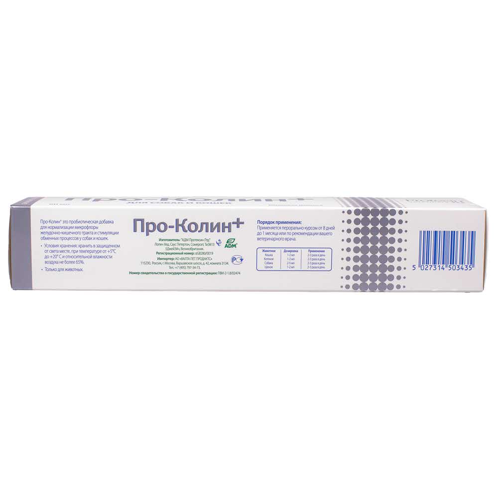 Про-Колин+® – пробиотическая кормовая добавка для нормализации микрофлоры желудочно-кишечного тракта и стимуляции обменных процессов у собак и кошек.