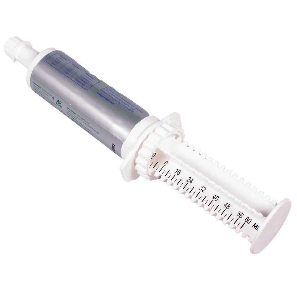 Для введения нужного количества продукта используйте ручное колесико на поршне шприца. Вращайте колесико, пока оно не окажется справа от числа, обозначающего желаемое количество пасты, которую необходимо ввести животному. |