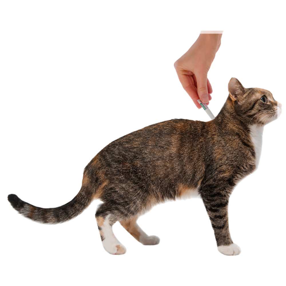 - избавление от блох на животном происходит в тот же день когда применили капли. Капли наносятся на холку – на кожу между лопатками, у основания шей, в место недоступное для слизывания.