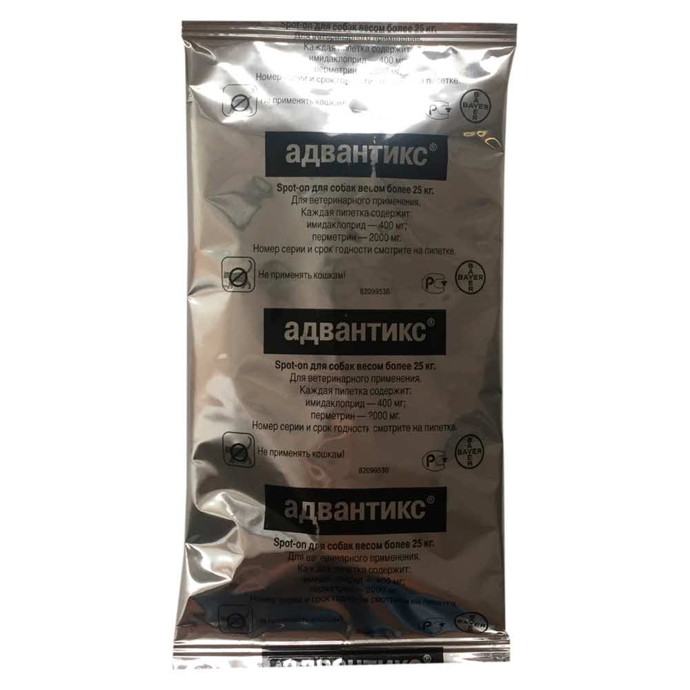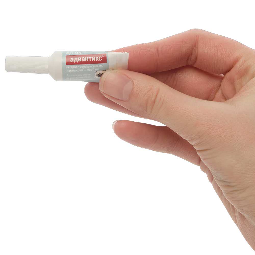 Адвантикс 400 С для собак 25-40 кг (4 пипетки х 4 мл) применяют для уничтожения блох, вшей, летающих насекомых и иксодовых клещей, паразитирующих на собаках, а также для защиты животных от их нападения.