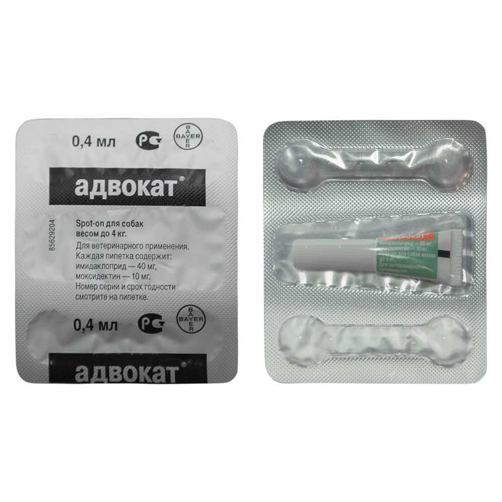 Адвокат 40 капли на холку для собак до 4 кг (1 пипетка х 0,4 мл) от чесоточных клещей, блох и гельминтов назначают собакам весом до 4 кг для лечения и профилактики демодекоза, отодектоза, саркоптоза, энтомозов, кишечных нематодозов (токсокароз, токсаскаридоз, унцинариоз, анкилостомоз), а также для лечения и профилактики дирофиляриоза.