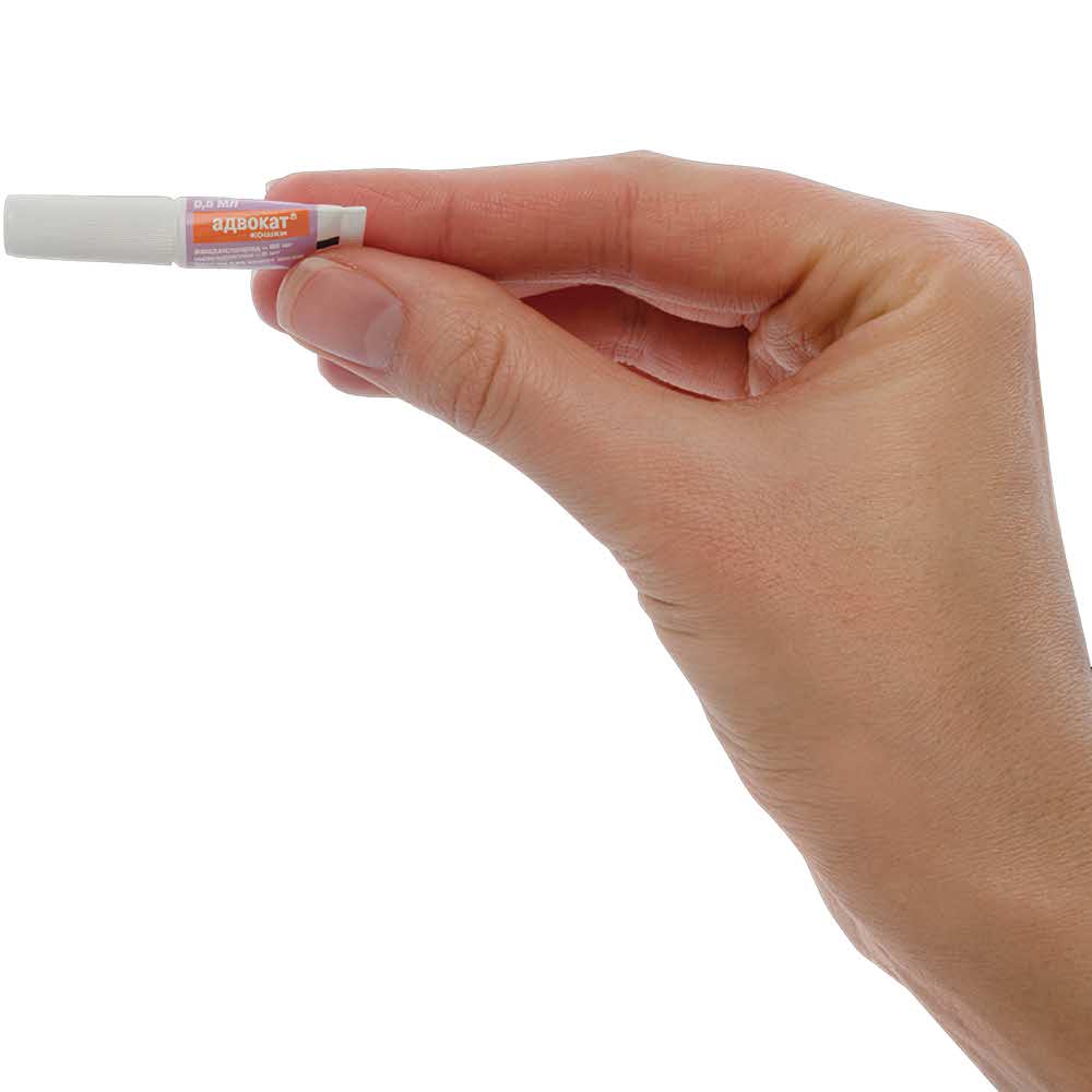 Адвокат применяют животным путем капельного («spot-on») нанесения на сухую неповрежденную кожу. Перед использованием с пипетки снимают защитный колпачок и, расположив ее вертикально, прокалывают защитную мембрану носика пипетки (надев колпачок с обратной стороны), затем колпачок снова снимают. Препарат, раздвинув шерсть, наносят животному в места, недоступные для слизывания, непосредственно на кожу между лопатками у основания шеи. При обработке крупных животных содержимое пипетки наносят на кожу в 3 – 4 места. Минимальная терапевтическая доза 10 мг/кг живого веса имидаклоприда и 1,0 мг/кг веса моксидектина, что эквивалентно 0,1 мл/кг веса препарата Адвокат для кошек.