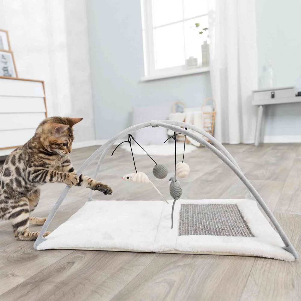 Когтеточка Junior с игрушками на верёвочке, 60 × 33 × 42 см, серый/светло-серый