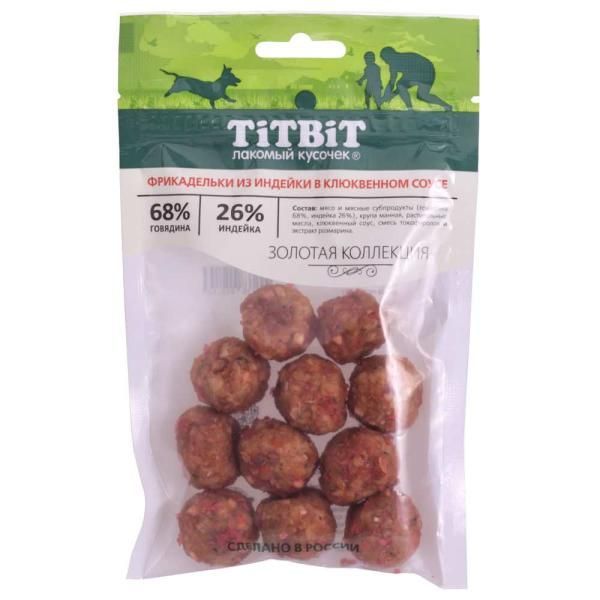 Лакомство TiTBiT Фрикадельки из индейки в клюквенном соусе для собак Золотая коллекция 70 г