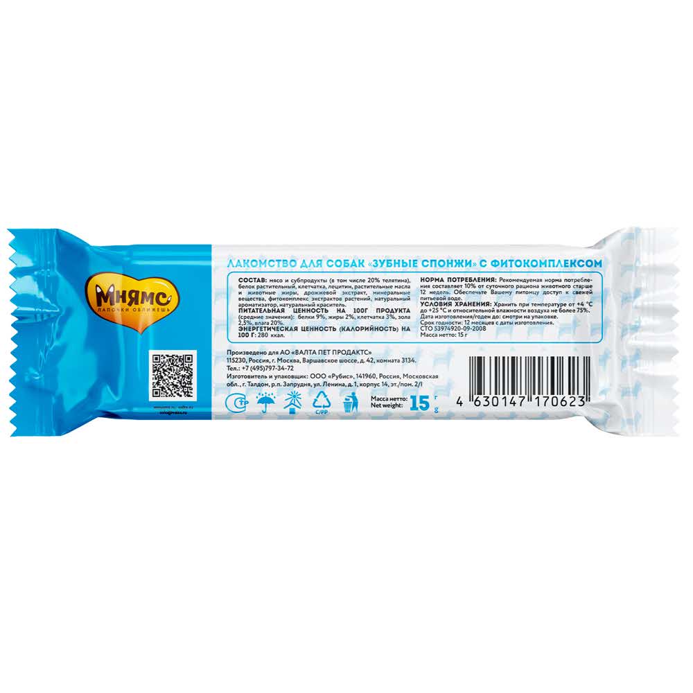 Лакомство Мнямс DENTAL для собак "Зубные спонжи" 15г