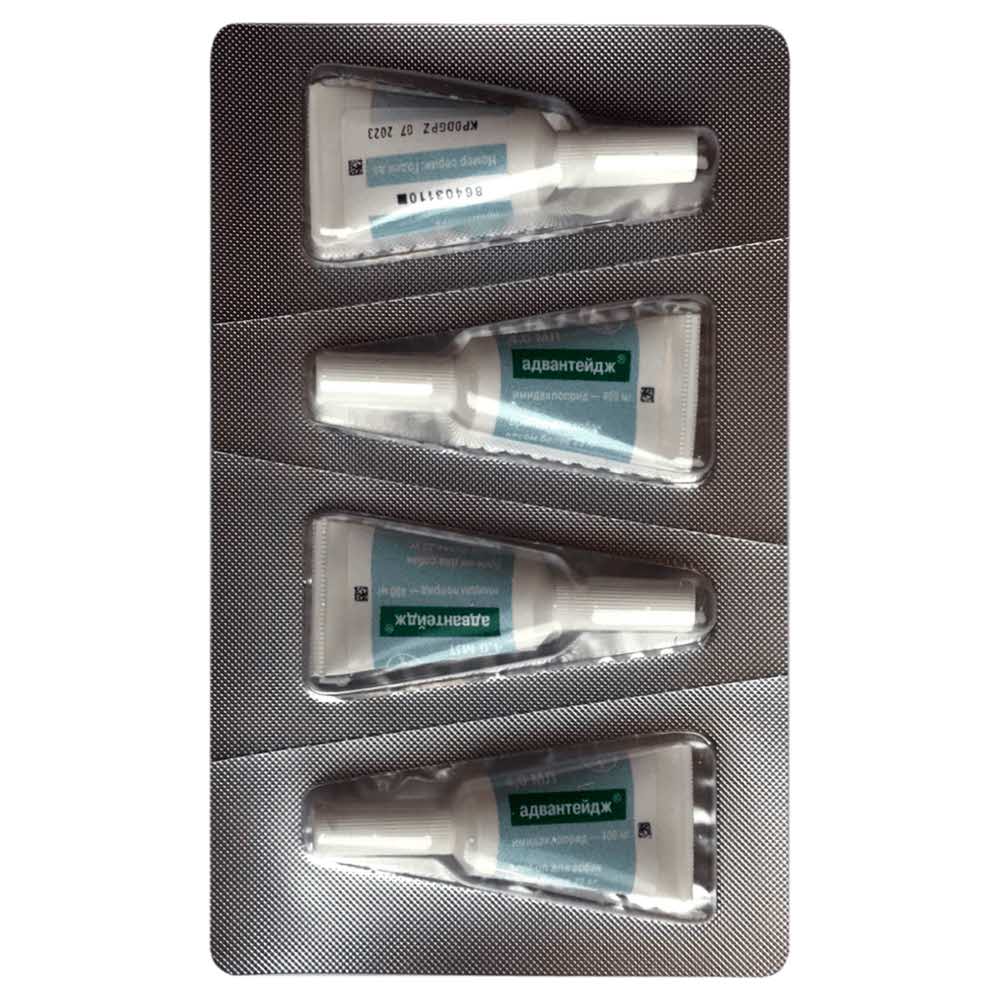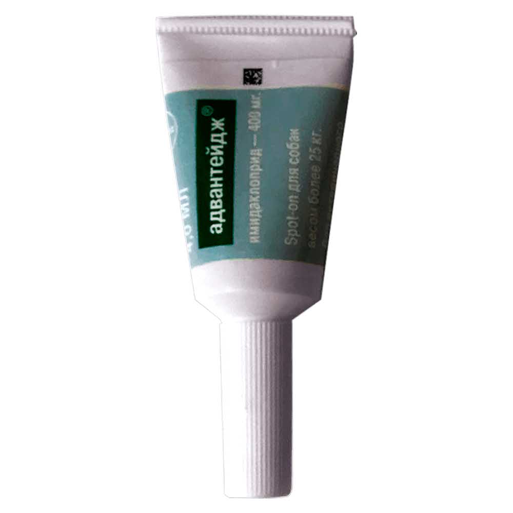 Адвантейдж 400 капли для собак 25-40 кг от блох (4 пипетки х 4 мл) - продукт, помогающий защитить собаку от блох, вшей и власоедов. Капли Адвантейдж распределяются по шерсти и коже и избавляют животное от блох, а также препятствуют повторному заражению блохами в течение 28 дней после применения препарата.