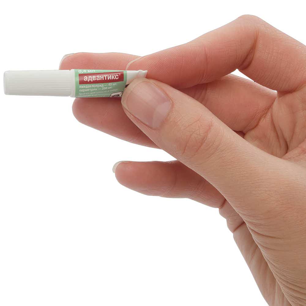 Адвантикс 40 С для собак до 4 кг (1 пипетка х 0,4 мл) применяют для уничтожения блох, вшей, летающих насекомых и иксодовых клещей, паразитирующих на собаках, а также для защиты животных от их нападения.