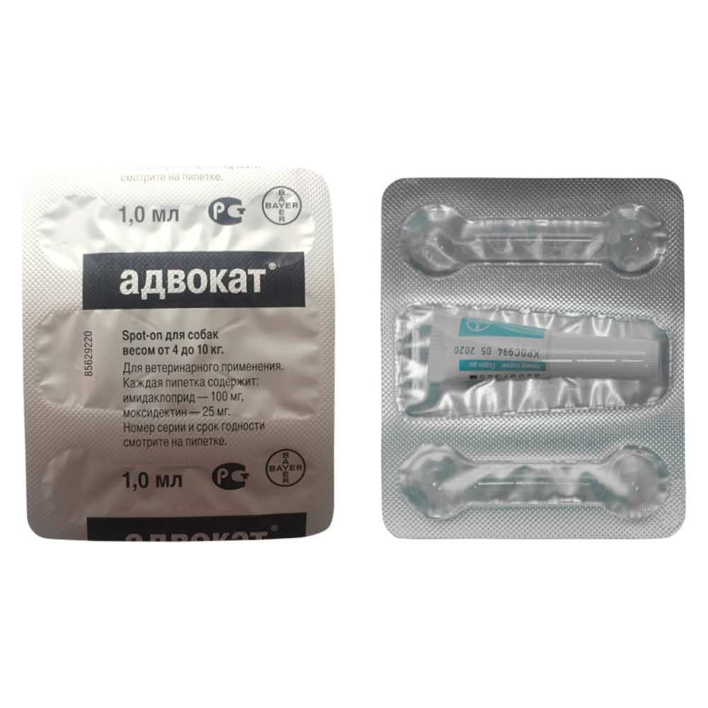 Адвокат 100 капли на холку для собак 4-10 кг (1 пипетка х 1 мл) от чесоточных клещей, блох и гельминтов назначают собакам весом от 4 до 10 кг для лечения и профилактики демодекоза, отодектоза, саркоптоза, энтомозов, кишечных нематодозов (токсокароз, токсаскаридоз, унцинариоз, анкилостомоз), а также для лечения и профилактики дирофиляриоза.
