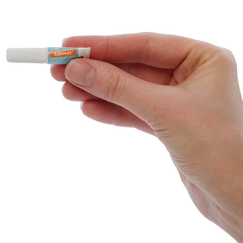 Адвокат применяют животным путем капельного («spot-on») нанесения на сухую неповрежденную кожу. Перед использованием с пипетки снимают защитный колпачок и, расположив ее вертикально, прокалывают защитную мембрану носика пипетки (надев колпачок с обратной стороны), затем колпачок снова снимают. Препарат, раздвинув шерсть, наносят животному в места, недоступные для слизывания, непосредственно на кожу между лопатками у основания шеи. При обработке крупных животных содержимое пипетки наносят на кожу в 3 – 4 места. Минимальная терапевтическая доза препарата для собак составляет 0,1 мл/кг массы тела животного (10 мг/кг имидаклоприда и 2,5 мг/кг моксидектина).