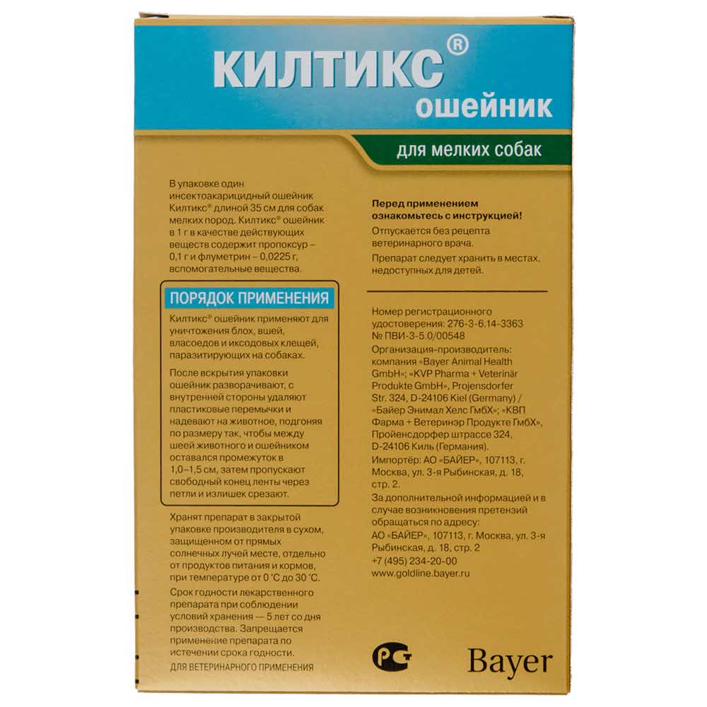 Килтикс ошейник 35 см для меленьких собак - традиционное средство защиты и профилактики от блох, вшей, власоедов и иксодовых клешей. Ошейник Килтикс работает непрерывно в течение 6 месяцев с момента его надевания.